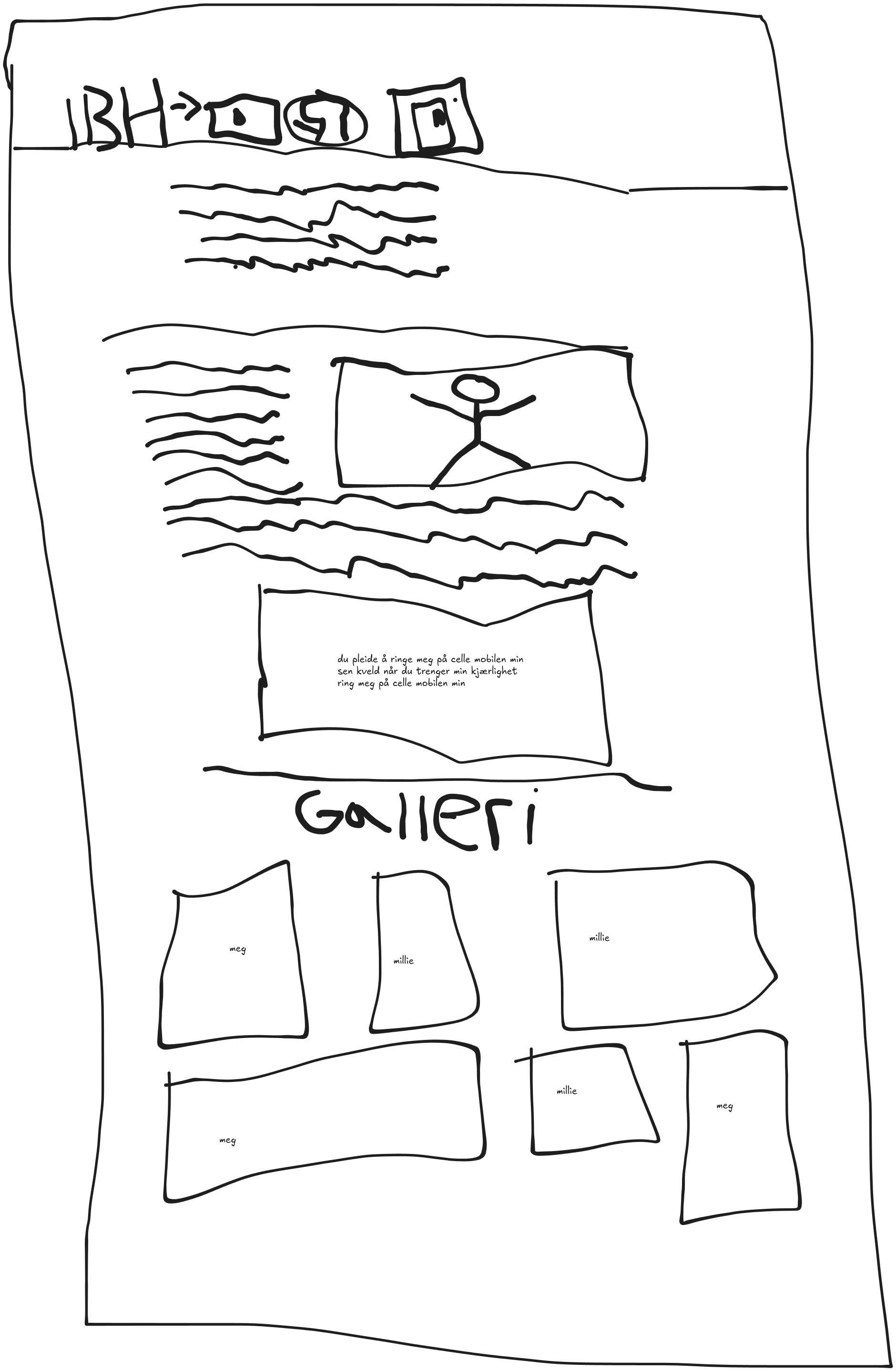 Grunnen til at jeg ikke har fulgt skissen min er at etter jeg lagde skissen min, som jeg lagde med nesten ingen erfaring i web-utvikling, er at jeg har fått mer erfaring, blitt bedre, og skjønt at designet i skissen ikke var særlig bra. Jeg føler at designet på skissen var veldig barebones, og at det hadde vært veldig vanskelig å få inn alt jeg hadde/har lyst å få inn på siden med det designet. Grunnen til at det er så mye tomrom på designet jeg har gjort nå, er at jeg har prøvd å gjøre det så minimalistisk som mulig. Hvorfor? Det ser fint ut.